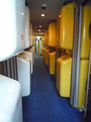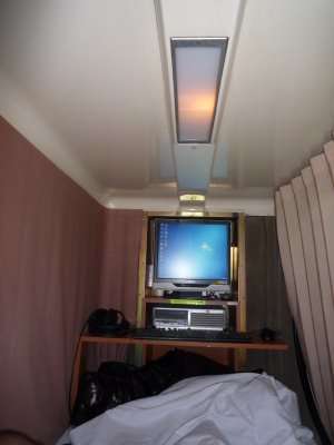 O gerente do hotel foi muito bacana e me arranjou um “quarto” sem cliente em cima, pra nao me incomodor. Ele comentou que é normal chegar pessoal bêbado de madrugado, por isso me colocou no ultimo “quarto” do corredor, pra eu dormir mais relaxado. Adorei que na minha capsula tinha computador, foi muito legal.