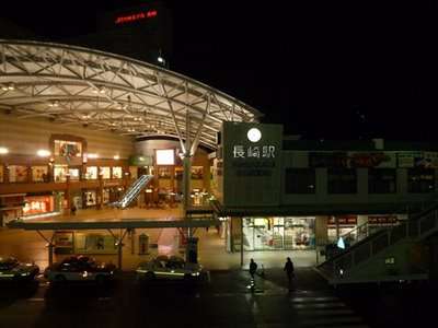 Quando chegamos a Nagasaki a noite, vimos um barco holandês no porto de Nagasaki que é do lado da estação cental de Nagasaki. Diferente das estações do Brasil, a maioria das estações do Japão, são enormes shopping e aqui não é diferente. Tinha parque de diversos da Sega, uma rede de cinemas, e mais de 3 andares de lojas. Verdade seja dita, a estação de Nagasaki é uma das mais belas que eu já vi, sendo um verdadeiro cartão postal da cidade.