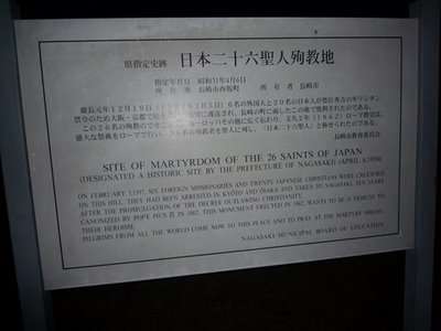 Fomos para lá de madrugada, depois de ir ao Coco Walk, sendo um desafio subir até lá. Vale lembrar, que tem um prédio da NHK que serve como referência, para encontrar os 26 mártires. Subimos uma ladeira, que se dá de encontro com a torre da NHK, que é bem próximo do local do monumento em forma de cruz, aonde encontramos os 26 mártires.
