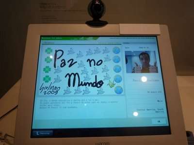 Eu e o Renato deixamos recados de paz tanto no computador, como no mural aonde podemos deixar recados de paz. Vale lembrar, que lá pode ser encontrado recados não só de pessoas, mas de organizações e até de governos pedindo a paz do mundo. Arrepia e ao mesmo tempo, nos ensina uma lição importante que é a de pedir a paz.