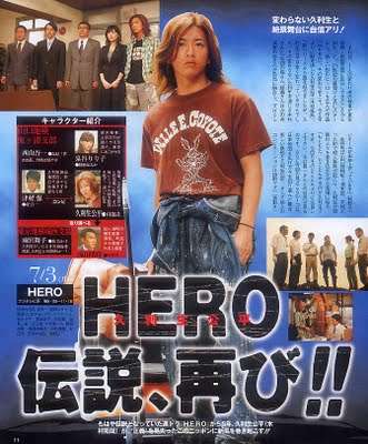 Para estrear a seção doramas, não podiamos, começar com outro senão o maior dorama de todos os tempos no Japão. Hero tem diversos fatores pra ter sido um sucesso, desde sua trilha sonora assinada pela Utada Hikaru, no seu auge, como também ter como protagonista o ator Takuya Kimura, isso sem mencionar Matsu Takako que já havia feito par romantico com ele em outros doramas.