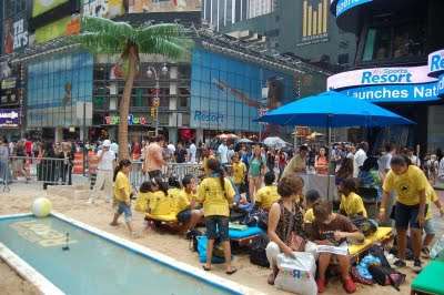 A notícia veio do Fuck The Line, que postou as fotos do lançamento do jogo na Times Square, transformando esse famoso cenário de Nova York, numa enorme praia artificial.