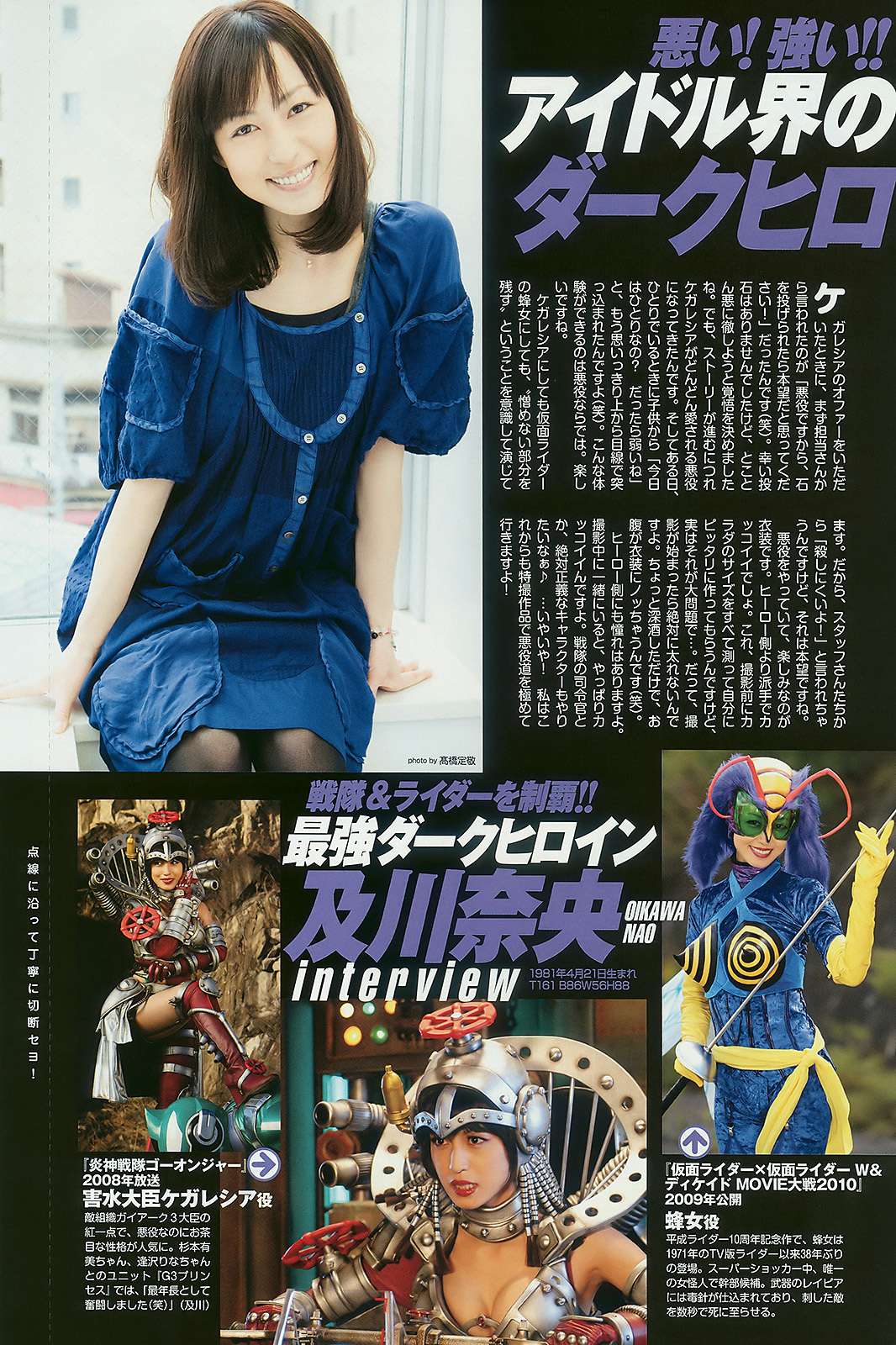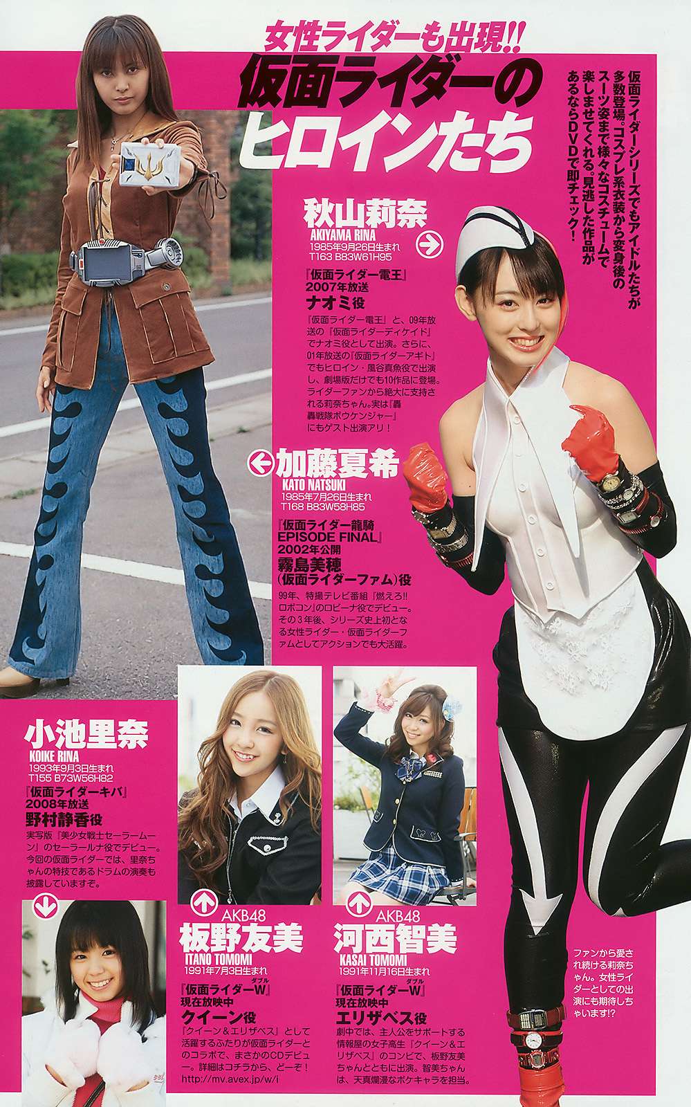 Agora, voltando ao assunto principal, as heroínas e vilãs de tokusatsu ganharam vez na edição da Weekly Playboy, trazendo atrizes desde Zyuranger a até o mais recente Goseiger que ainda está em exibição no Japão. Algumas atrizes o pessoal fã do gênero deve conhecer, como: Aizawa Rina, Sugimoto Yumi, Sato Rika, Niwa Mikiho, Morita Suzuka, Yamasaki Mami, Oikawa Nao entre outras.