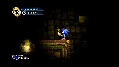 Além da bela movimentação do ouriço que agora pode carregar uma tocha para iluminar locais escuros,dá pra perceber que esta Lost Labyrinth é bastante parecida com a Labyrinth Zone de Sonic 1.