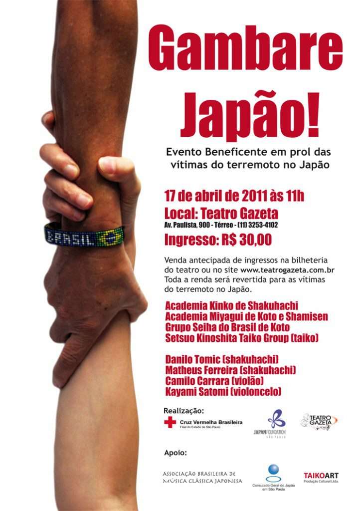 No dia 17 de abril será realizado um evento beneficente no Teatro Gazeta em prol as vitimas do terremoto que atingiu o Japão.
