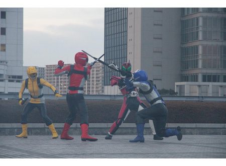 Também o roteiro é meio confuso. Tudo bem que vi o filme sem legendas e meu Japonês está mais enferrujado que o Homem de Ferro depois do banho mas não lembro de ver alguma explicação de como os vilões antigos de algumas series Kamen Rider e Sentai voltaram à vida. Eles só tão por lá e já era.