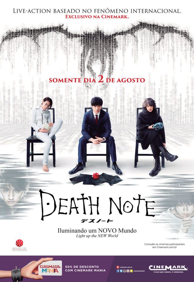 Agosto será o mês de Death Note em todo mundo, devido remake americano produzido pela Netflix. Mas você sabia que teremos Death Note japonês nos cinemas? Além do novo filme lançado ano passado (que é uma continuação da história original), temos os dois primeiros filmes (de 2006) também sendo lançados por aqui numa super maratona pela Rede Cinemark.