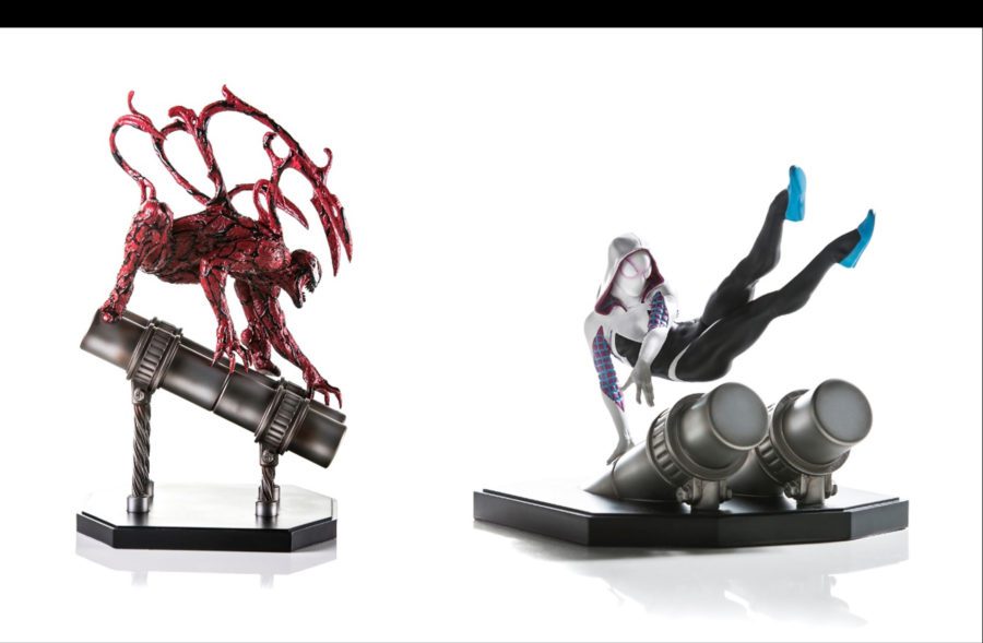 A Spider-Gwen e o Carnificina fazem parte desse diorama que terão peças produzidas em edição limitada. Elas são fabricadas em polystone e pintadas à mão, tendo cada uma acompanhada de uma base para compor a cena de combate.