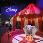 Também tivemos Dumbo com circo, além de uma estátua em tamanho real do elefantinho que pode voar. Reimaginado por Tim Burton, o stand estava belíssimo no evento.