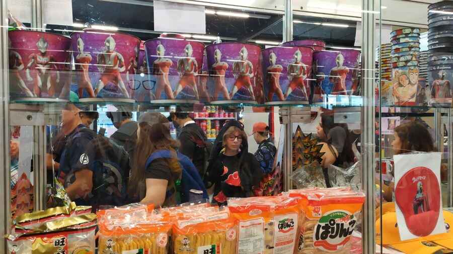 Vale outro ponto curioso que o evento tinha uma loja da Anime Friends, vendendo produtos dos outros eventos dela. Assim, você poderia comprar camisetas do Ultraman da edição desse ano em São Paulo e no Rio de Janeiro, além de almofadas, canecas entre outros itens. Tendo preços bem baixos, era outro ponto obrigatório para fãs dentro do evento.