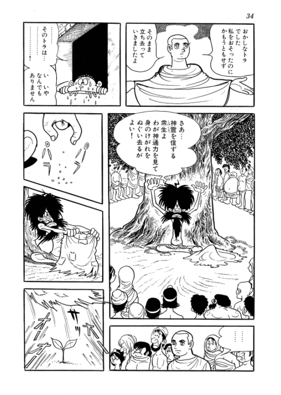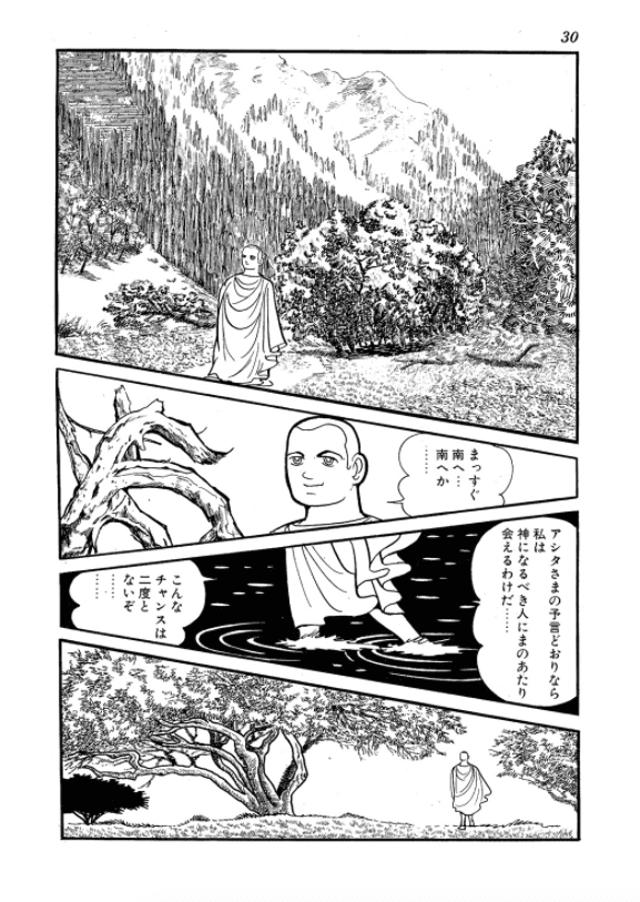 Lançado entre 1972 e 1983 na revista Comic Tom, da Ushio Shuppan, o mangá é um dos últimos trabalhos de peso de Tezuka e traz desdobramentos das discussões do ciclo de vida e morte a partir da interpretação particular do autor sobre a história de Buda. No mangá, muitos dos personagens são ficcionais e algumas das figuras históricas também aparecem com significativa dramatização.