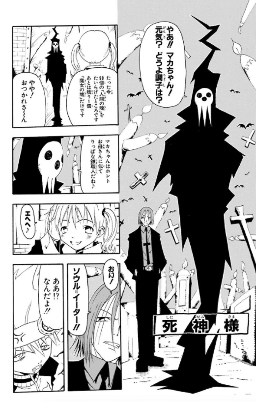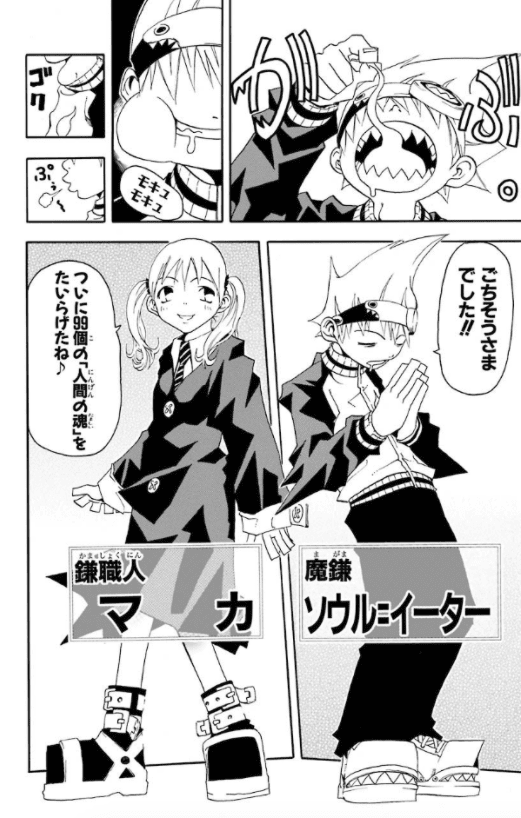 Mas ela não é a única que deseja isso. Também estão nessa “empreitada” o grande ninja Black ☆Star e sua parceira Tsubaki; e o filho do Dr. Morte – o perfeccionista Death the Kid – e suas pistolas, as irmãs Liz e Patti Thompson.