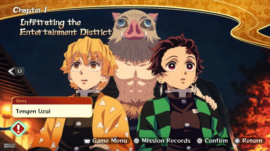No modo história, acompanhamos Tanjiro e seus amigos ainda no início de sua jornada, junto ao Hashira Tengen Uzui. Para investigarem o distrito discretamente, Tanjiro e seus companheiros se disfarçam de mulheres, uma escolha hilária, embora claramente ineficaz para passarem despercebidos, enquanto ataques misteriosos assolam as cortesãs da região.