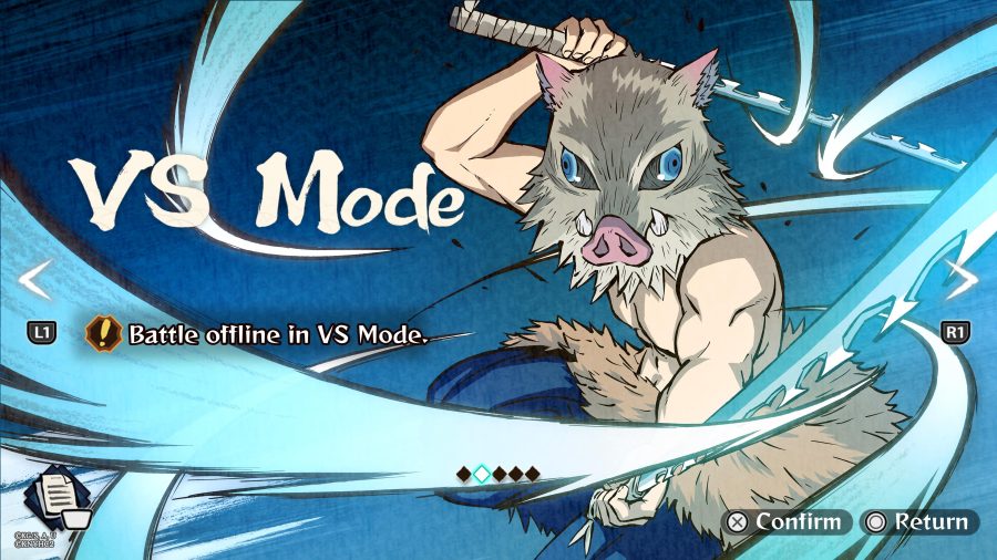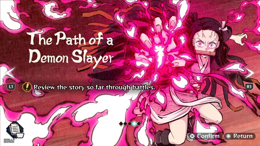 O título apresenta quatro modos principais: História, VS Mode, Online Match e The Path of a Demon Slayer. O destaque vai para o modo história, que cobre o Arco do Distrito do Entretenimento. Já os modos de combate incluem 47 personagens jogáveis (desbloqueáveis ao longo do jogo), enquanto o último modo revisita momentos-chave da franquia.