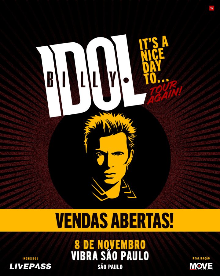 A energia do rock britânico vai invadir São Paulo em 8 de novembro, quando Billy Idol se apresenta na Vibra São Paulo com sua turnê mundial “It’s a Nice Day to… Tour Again!”. A casa de shows, referência na América Latina, será palco de um espetáculo que promete reviver toda a força e rebeldia que fizeram do artista um ícone incontestável da cena.