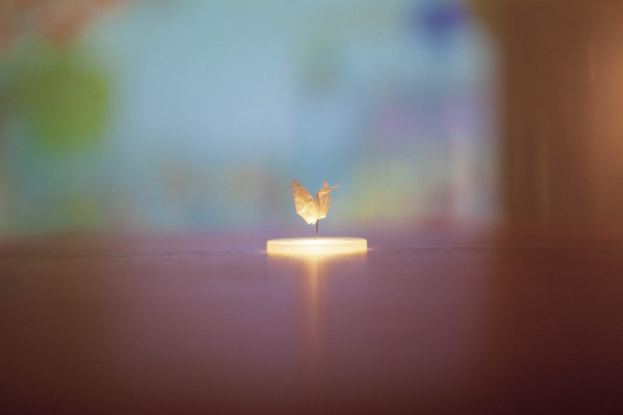 O ponto central da exposição é uma instalação de origami criada por Mari Kanegae, em formato de jardim de oleandros. Essas flores foram as primeiras a brotar em Hiroshima após o ataque nuclear — em um solo que os cientistas diziam estar morto por décadas. Mari usa origamis brancos para representar esse renascimento silencioso.
