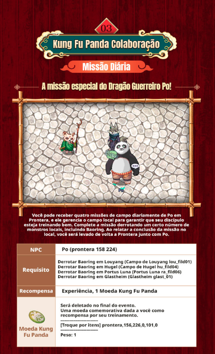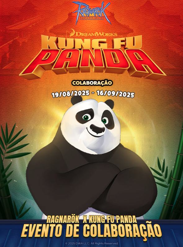 A grande novidade é a parceria entre Ragnarök Online LATAM e Kung Fu Panda, que traz Po, Zhen e Mestre Shifu para o universo do MMORPG. O evento vai de 19 de agosto a 16 de setembro, oferecendo missões especiais como: