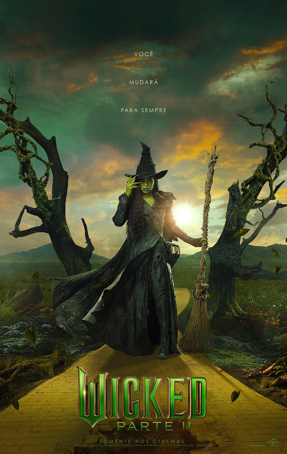 A Universal Pictures divulgou novas artes de “Wicked: Parte II” (Wicked: For Good), último capítulo da adaptação do famoso musical da Broadway. Com estreia marcada para 20 de novembro, o longa encerra a trajetória de Elphaba e Glinda, personagens que marcaram a cultura pop tanto no teatro quanto no cinema.