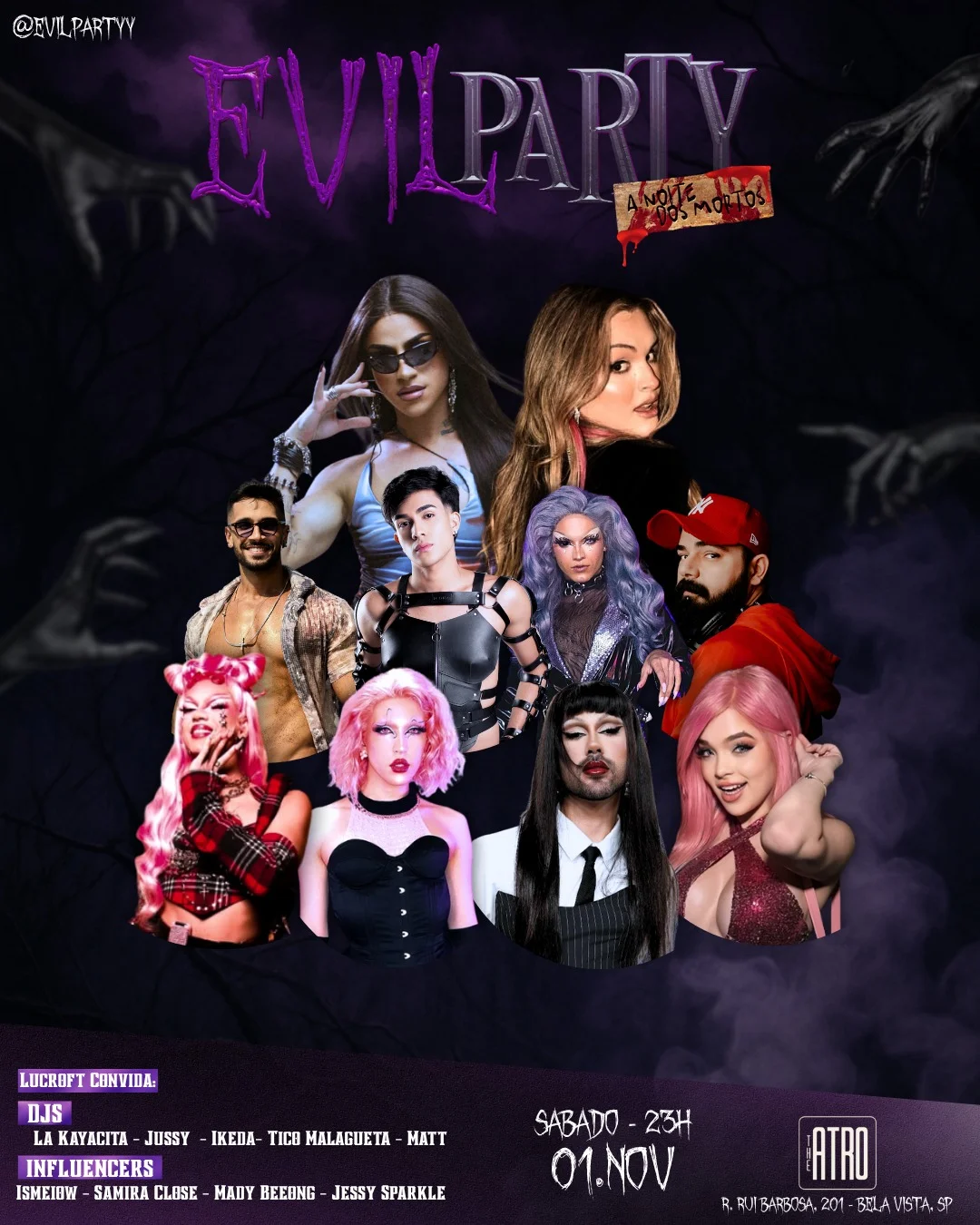 Depois do sucesso estrondoso da edição de 2024, a Evil Party retorna em 2025 prometendo uma noite ainda mais intensa, colorida e cheia de brilho sombrio. No dia 1º de novembro, o lendário The Atro, na Bela Vista (SP), será tomado por criaturas da noite, influenciadores e artistas da cena LGBTQIA+ para celebrar o Halloween de um jeito único, com música, performance e diversidade em cada detalhe.