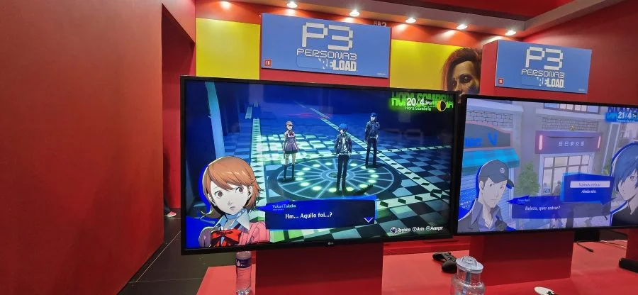 O diferencial do estande foi permitir que o público testasse sucessos recentes, como Cyberpunk 2077: Ultimate Edition, Persona 3 Reload e Street Fighter 6, todos portados para o Switch 2. Vale lembrar que Persona 3 Reload ainda não havia sido lançado, então foi uma oportunidade rara de jogar antes do lançamento oficial.