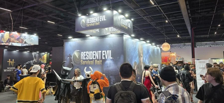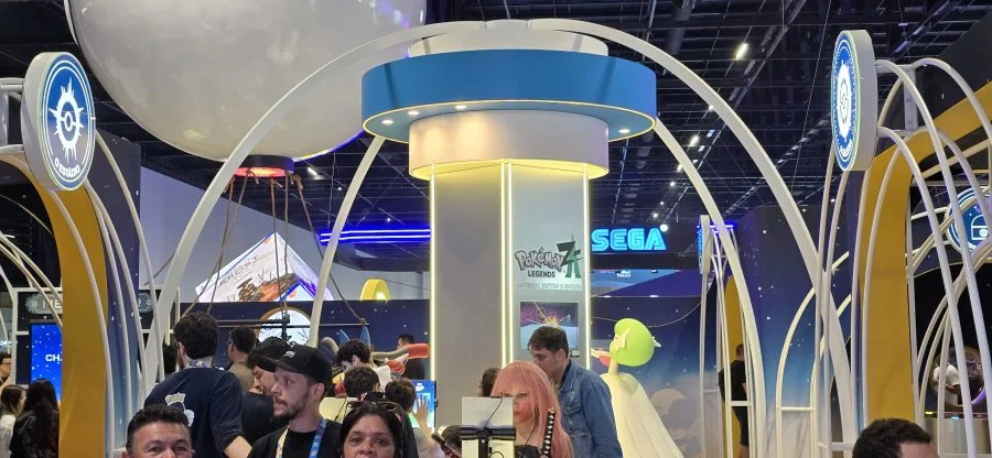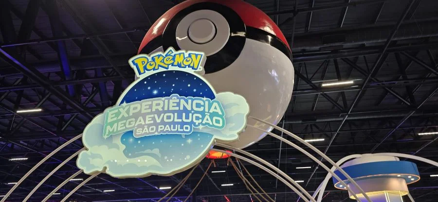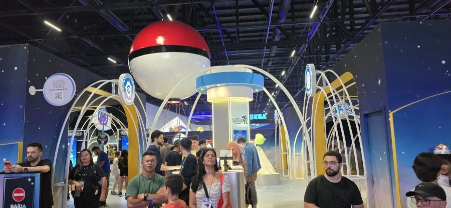 O estande da The Pokémon Company foi um dos mais chamativos da feira, coroado por uma enorme Pokébola no topo. A empresa destacou Pokémon Legends: Z-A e a expansão Mega Evolução.