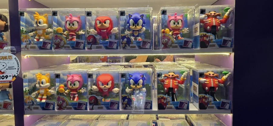 Nos brindes, pôsteres de Sonic Racing: CrossWorlds e aromatizantes de carro com personagens do jogo completavam o pacote.