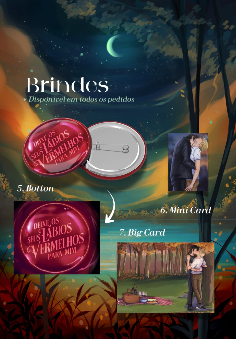 Durante o período de pré-venda, o livro acompanha mais de sete brindes exclusivos, incluindo marca-páginas, ímã, bottom, cards e materiais especiais criados para quem acompanha a história desde o Wattpad. O volume corresponde ao primeiro de dois livros da duologia.
