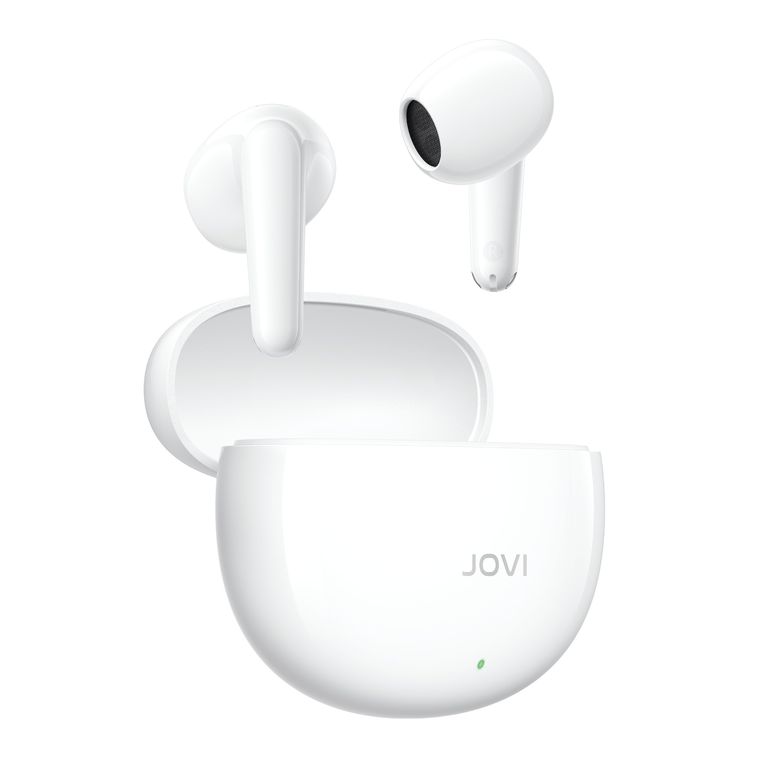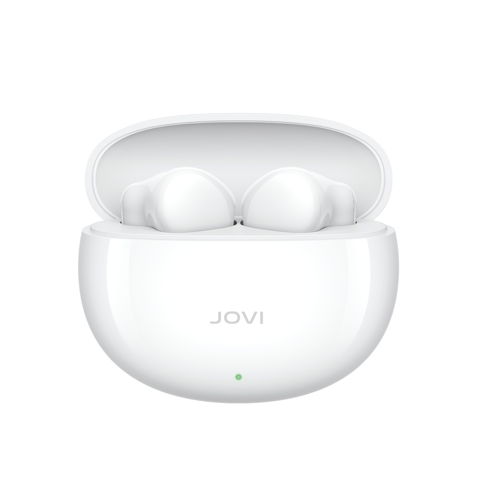 Os fones trazem cancelamento de ruído em chamadas via IA, conexão com dois dispositivos ao mesmo tempo, controles por toque e integração com o ecossistema JOVI. O design é leve, aberto e resistente à água e poeira com certificação IP54.