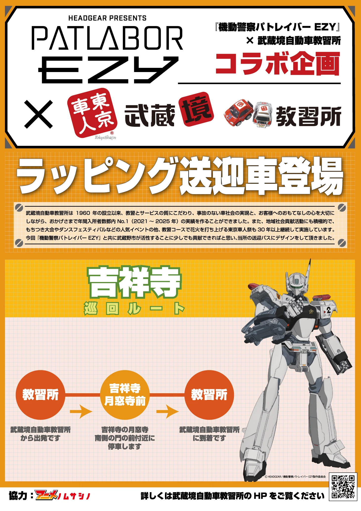 Os ônibus personalizados começam a circular por rotas estratégicas de Musashino, incluindo regiões como Mitaka, Kichijoji e áreas universitárias. Cada veículo traz um design exclusivo inspirado em Patlabor EZY, reforçando a identidade visual do novo projeto e funcionando como uma vitrine móvel do anime.