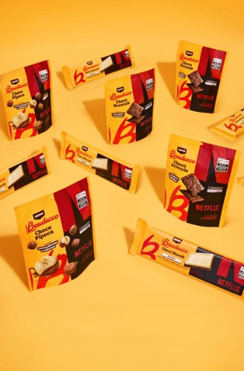 Versão especial do tradicional Choco Biscuit, com design temático inspirado na parceria com a Netflix.