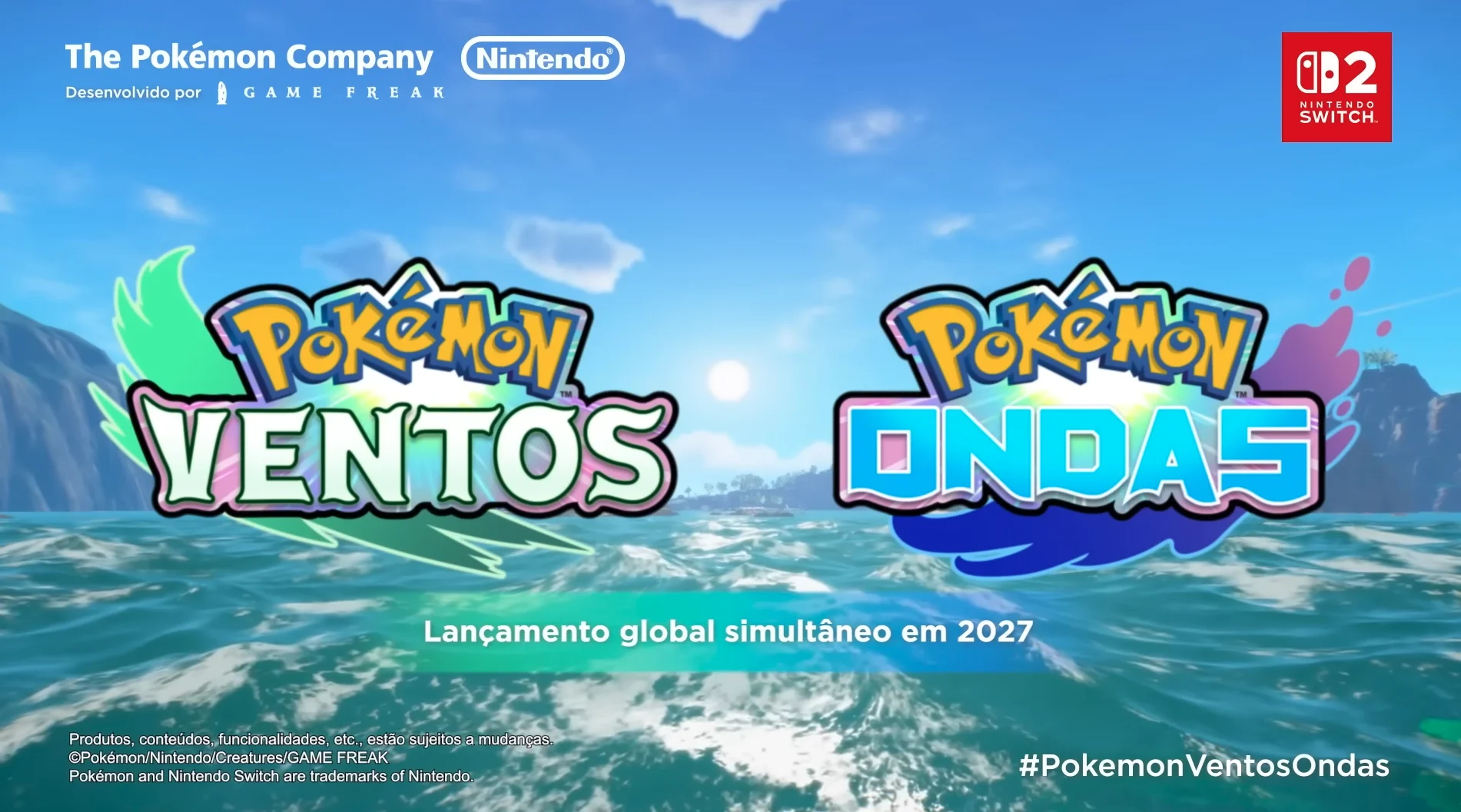 O anúncio foi feito durante o Pokémon Day, na apresentação do Pokemon Presents, e confirmou o que muita gente no Brasil esperava há anos. A partir de Pokémon Ventos e Pokémon Ondas, a série principal passa a oferecer português do Brasil como idioma oficial. Os novos jogos são desenvolvidos pela GAME FREAK e chegam exclusivamente ao Nintendo Switch 2, com lançamento previsto para fevereiro de 2027.