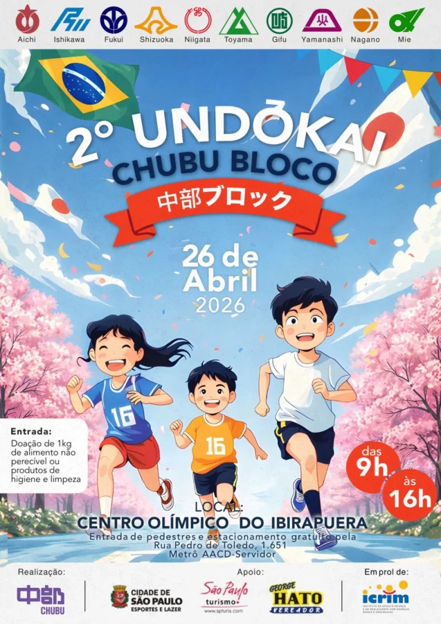 São Paulo recebe em 26 de abril de 2026 a segunda edição do Undokai do Chubu Bloco, encontro inspirado nas tradicionais gincanas esportivas japonesas que misturam competição leve, convivência comunitária e muita atividade ao ar livre. O evento acontece no Centro Olímpico do Ibirapuera, das 9h às 16h, e é aberto ao público de todas as idades.