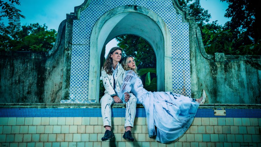 Enquanto isso, no Rio de Janeiro, as influenciadoras Giulia Barros e Thaís Sória, conhecidas nas redes como Sapatokers, participaram de um ensaio no estilo trash the dress, em que vestidos de casamento são destruídos em frente às câmeras. O cenário escolhido foi o Museu do Açude, reforçando o contraste entre romantismo e rebeldia que marca o tom do filme.
