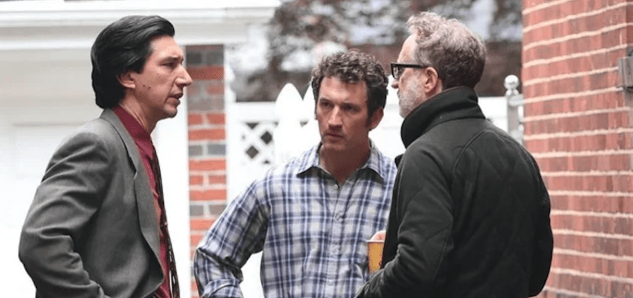 Adam Driver, Miles Teller e James Gray no set de Paper Tiger (RT Features)