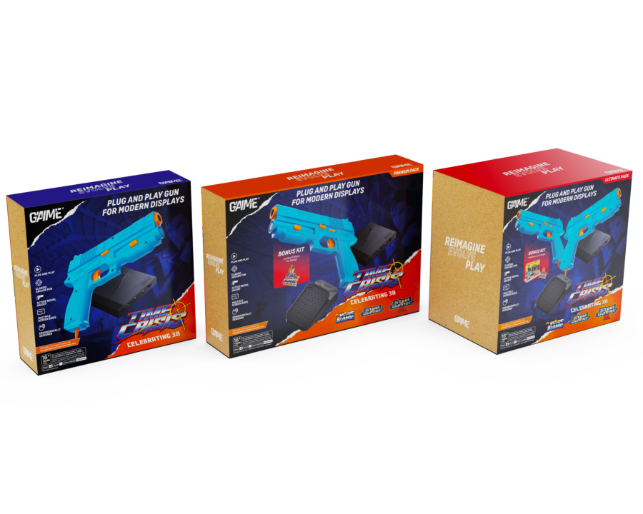 O periférico será vendido em dois formatos. O pacote Premium inclui uma unidade da lightgun, mini-console com jogos e pedal. Já o Ultimate adiciona uma segunda arma para multiplayer, além de itens colecionáveis.