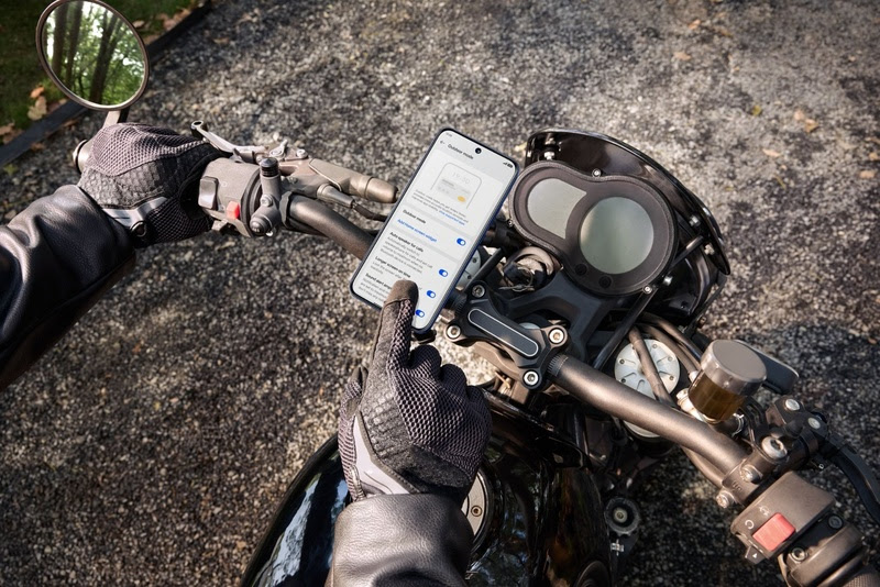 O modelo inclui ajustes automáticos para ambientes externos, como aumento de brilho e otimização de áudio. Há também suporte para uso com luvas, algo útil em situações específicas, e melhorias de conexão em áreas com sinal instável.