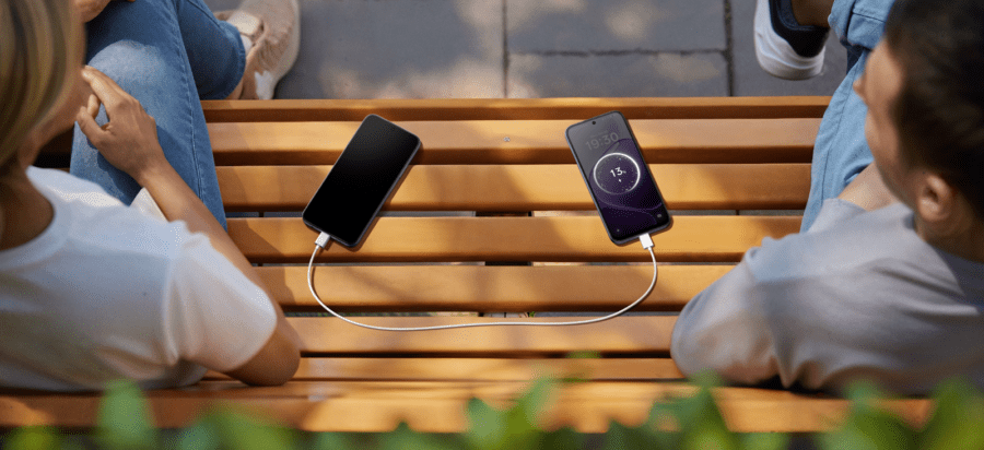 Outro detalhe é o carregamento reverso com fio, que permite usar o celular como powerbank em emergências.